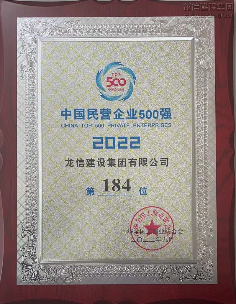 2022中國民營企業(yè)500強(qiáng) 第184位