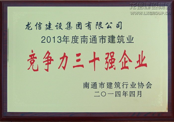 2013年度南通市建筑業(yè)競爭力三十強企業(yè)