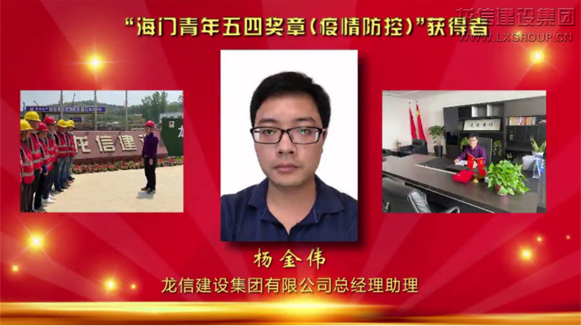 在五四青年節(jié)到來(lái)之際,共青團(tuán)海門(mén)市委、海門(mén)市青年聯(lián)合會(huì)特向優(yōu)秀青年和集體頒發(fā)“海門(mén)青年五四獎(jiǎng)?wù)?rdquo;。龍信建設(shè)集團(tuán)有限公司青年志愿服務(wù)隊(duì)榮獲“海門(mén)青年五四獎(jiǎng)?wù)录w”,龍信建設(shè)集團(tuán)有限公司總經(jīng)理助理?xiàng)罱饌s獲“海門(mén)青年五四獎(jiǎng)?wù)?rdquo;(疫情防控)。4月30日,由海門(mén)市新時(shí)代文明實(shí)踐中心辦公室、共青團(tuán)海門(mén)市委主辦,海門(mén)市融媒體中心承辦,龍信集團(tuán)等單位共同贊助的“不懼風(fēng)雨,奮勇前進(jìn)”——海門(mén)市“五四”青年節(jié)線上文明實(shí)踐暨道德講堂總堂示范觀摩活動(dòng)通過(guò)電視和網(wǎng)絡(luò)進(jìn)行同步直播,活動(dòng)現(xiàn)場(chǎng)進(jìn)行表彰。